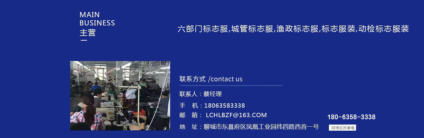 聊城市領(lǐng)祥服裝有限公司主主要生產(chǎn)六部門標(biāo)志服,城管標(biāo)志服,漁政標(biāo)志服,標(biāo)志服裝,動檢標(biāo)志服裝,標(biāo)志服裝廠等產(chǎn)品,款式新穎,做工精細(xì),可根據(jù)用戶要求批量定做。公司成立以來,已為各行業(yè)數(shù)千家企業(yè)、集團(tuán)承制了職業(yè)制服。 多年來,我公司本著“質(zhì)優(yōu)高效,守約重譽(yù)”的經(jīng)營理念給廣大新老客戶提供質(zhì)優(yōu)價廉的產(chǎn)品和售后服務(wù)。憑借良好的信譽(yù),雄厚的實(shí)力,優(yōu)質(zhì)的產(chǎn)品,低廉的價格愿與新老客戶真誠協(xié)作,業(yè)務(wù)遍布全國各地,是山東優(yōu)秀的標(biāo)志服裝廠,歡迎新老客戶參觀考察! 公司生產(chǎn)的職業(yè)服飾均以標(biāo)準(zhǔn)的質(zhì)量,頂尖精湛的技術(shù)為基礎(chǔ),以客戶的滿意為根本,全程采用電腦輔助設(shè)計制服,成衣、服飾配件(領(lǐng)帶,領(lǐng)結(jié),紐扣,帽子,企業(yè)標(biāo)志等)均可定織定染,普遍采用進(jìn)口或合資優(yōu)質(zhì)輔料,尺碼按身高和體型劃分或量體定制。每一道工序,每一個生產(chǎn)環(huán)節(jié)精雕細(xì)琢,充分體現(xiàn)了以質(zhì)量求生存,以信譽(yù)求發(fā)展的理念。并以準(zhǔn)確的市場定位,先進(jìn)的營銷理念,贏得廣大客戶的信賴支持! 公司宗旨:“團(tuán)結(jié)、服務(wù)、創(chuàng)新”。公司方針:“專業(yè)創(chuàng)造輝煌,質(zhì)量保證未來,用心換得人心”。熱誠歡迎業(yè)界同仁來公司洽談!...